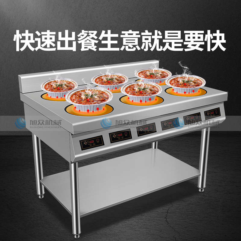 XZ-LBZL210圓頭六頭電陶爐,快餐外賣搶著買,一爐百烹快速出餐。煎炒燜煮煲等各樣花式,樣樣行,單頭3500W大火力實現(xiàn)快速出餐不等待做菜重要的就是火候,火力不足一切都是白搭。