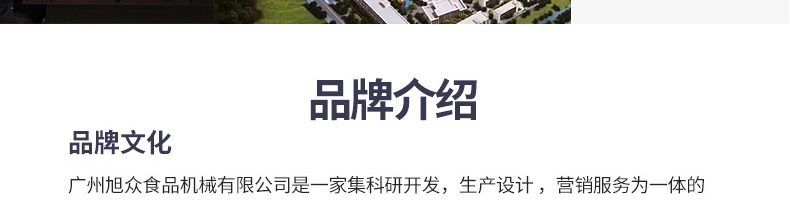廣州旭眾食品機械有限公司是一家集科研開發(fā),生產(chǎn)設(shè)計,營銷服務為一體的現(xiàn)代化生產(chǎn)企業(yè)?,F(xiàn)代化生產(chǎn)車間,精湛制造技術(shù),所產(chǎn)機械歷經(jīng)市場重重考驗,不斷贏得海內(nèi)外客戶的贊譽。