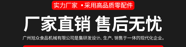 廣州旭眾食品機(jī)械有限公司是一家集科研開發(fā),生產(chǎn)設(shè)計(jì),營銷服務(wù)為一體的現(xiàn)代化生產(chǎn)企業(yè)?,F(xiàn)代化生產(chǎn)車間,精湛制造技術(shù),所產(chǎn)機(jī)械歷經(jīng)市場重重考驗(yàn),不斷贏得海內(nèi)外客戶的贊譽(yù)。