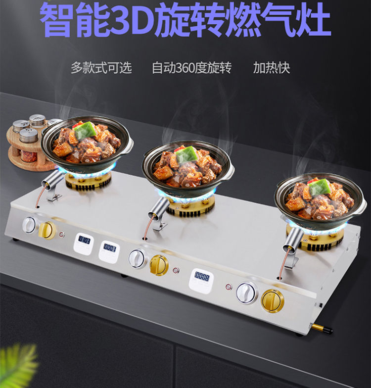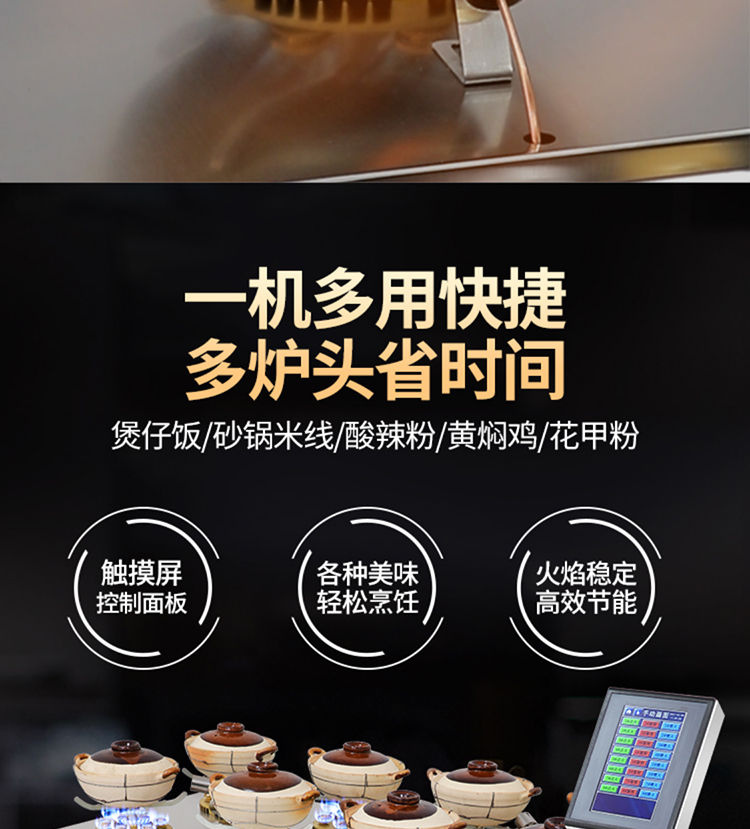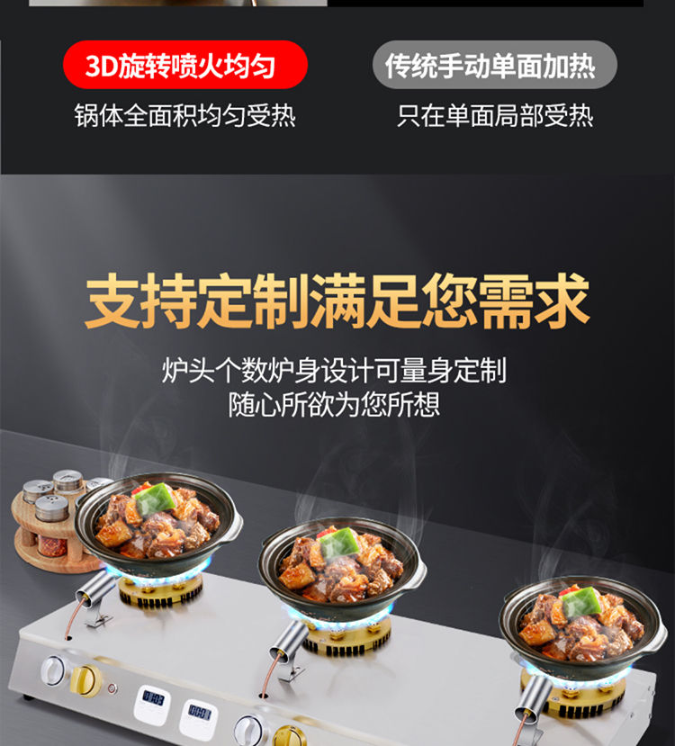 智能煲仔-爐商用四頭六眼旋轉(zhuǎn)韓式猛火灶-砂鍋灶燃?xì)庠睿?/p>