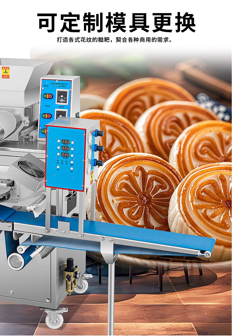 XZ-5000C糍粑機(jī),軟糯細(xì)膩、省時(shí)省力,不銹鋼糍粑機(jī)。智能控制面板,智能內(nèi)芯控制,可自由調(diào)節(jié)輸送,切刀和打餅的時(shí)間。拍扁刀切功能,具備氣缸打餅以及氣缸切刀的功能、又薄又準(zhǔn)確、可制作長(zhǎng)條形的產(chǎn)品。
