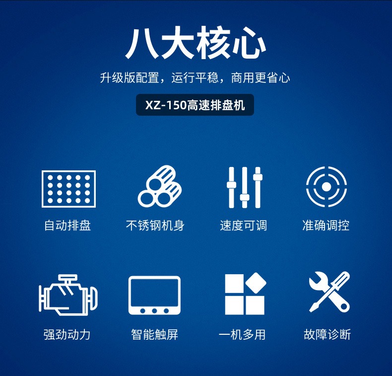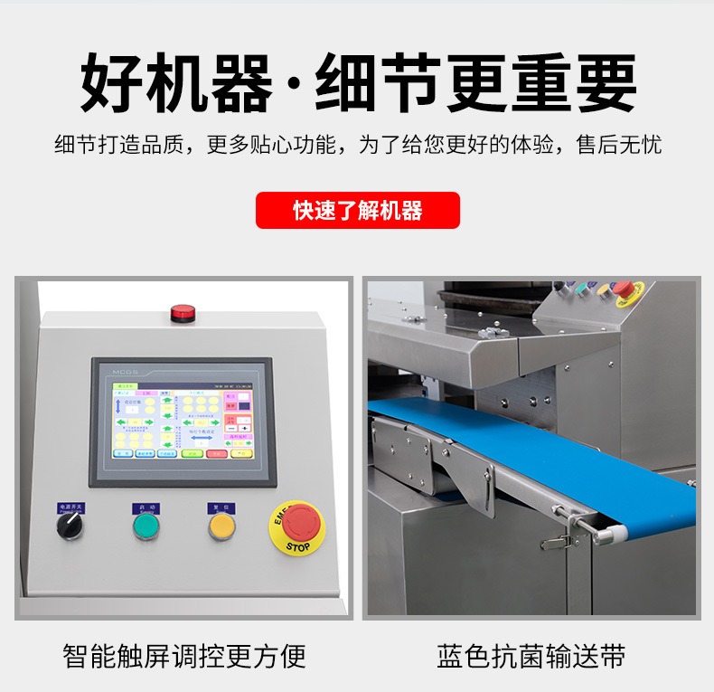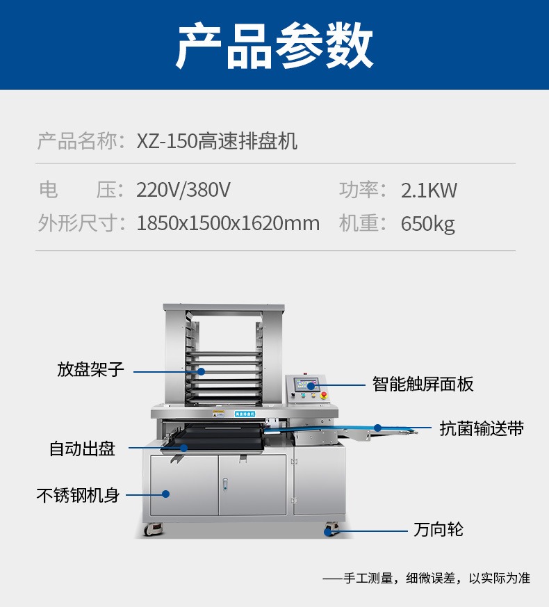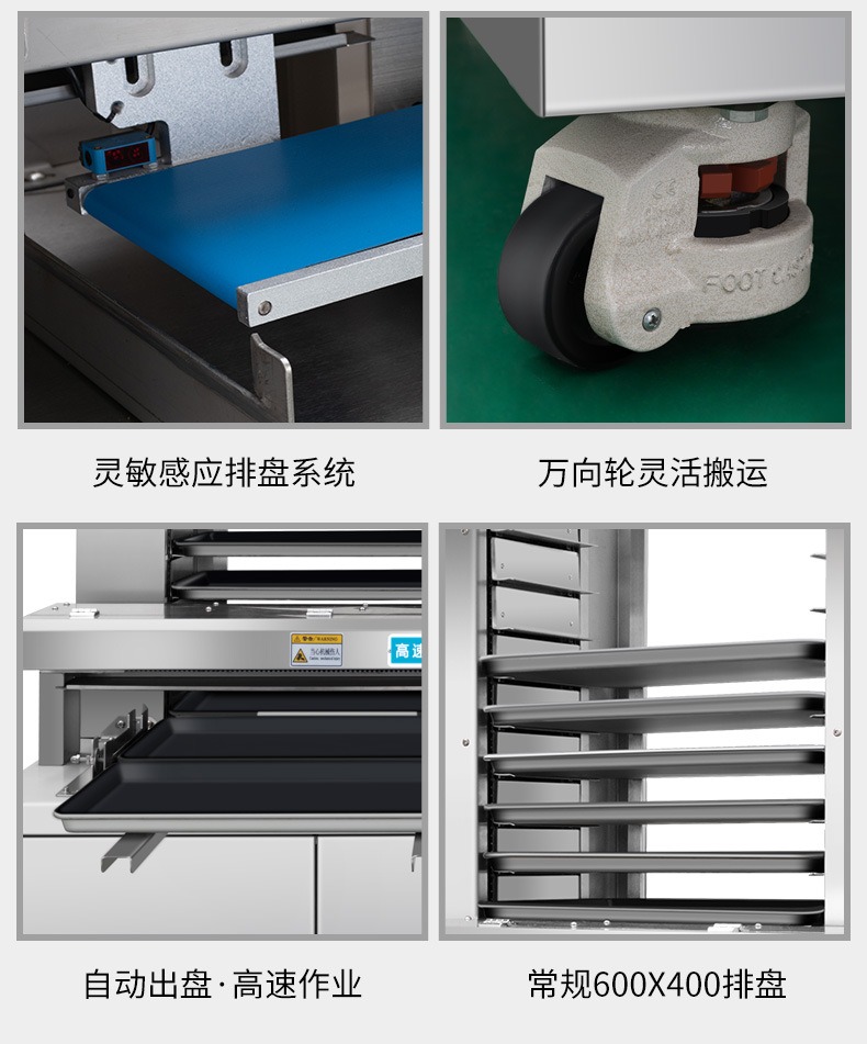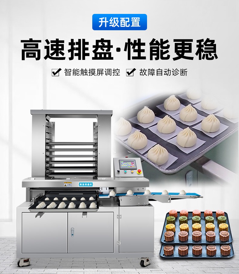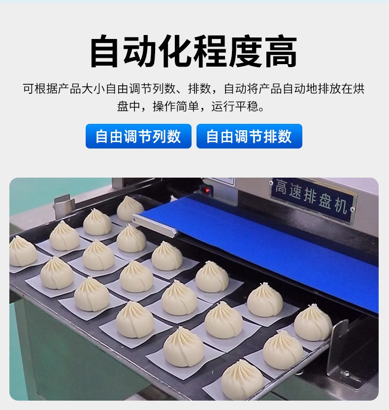多功能商用高速排盤機(jī),自動(dòng)化程度高,可根據(jù)產(chǎn)品大小自由調(diào)節(jié)列數(shù)、排數(shù),自動(dòng)將產(chǎn)品自動(dòng)地排放在烘盤中,操作簡(jiǎn)單,運(yùn)行平穩(wěn)。智能觸屏面板??刂葡到y(tǒng)由三菱PLC和進(jìn)口觸摸屏組成,操作簡(jiǎn)單方便。具有故障自動(dòng)診斷,一目了然。