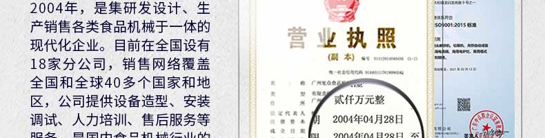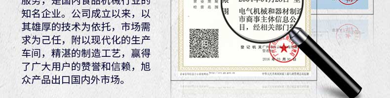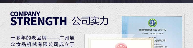 廣州旭眾食品機械有限公司是一家集科研開發(fā),生產(chǎn)設計,營銷服務為一體的現(xiàn)代化生產(chǎn)企業(yè)。現(xiàn)代化生產(chǎn)車間,精湛制造技術,所產(chǎn)機械歷經(jīng)市場重重考驗,不斷贏得海內(nèi)外客戶的贊譽。