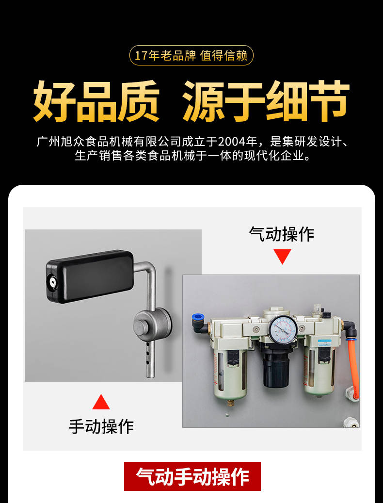 廣州旭眾食品機(jī)械有限公司是一家集科研開(kāi)發(fā),生產(chǎn)設(shè)計(jì),營(yíng)銷服務(wù)為一體的現(xiàn)代化生產(chǎn)企業(yè)?,F(xiàn)代化生產(chǎn)車間,精湛制造技術(shù),所產(chǎn)機(jī)械歷經(jīng)市場(chǎng)重重考驗(yàn),不斷贏得海內(nèi)外客戶的贊譽(yù)。