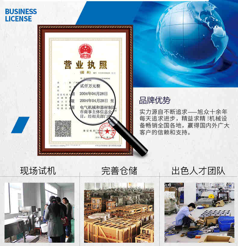 廣州旭眾食品機(jī)械有限公司是一家集科研開發(fā),生產(chǎn)設(shè)計,營銷服務(wù)為一體的現(xiàn)代化生產(chǎn)企業(yè)?,F(xiàn)代化生產(chǎn)車間,精湛制造技術(shù),所產(chǎn)機(jī)械歷經(jīng)市場重重考驗,不斷贏得海內(nèi)外客戶的贊譽(yù)。