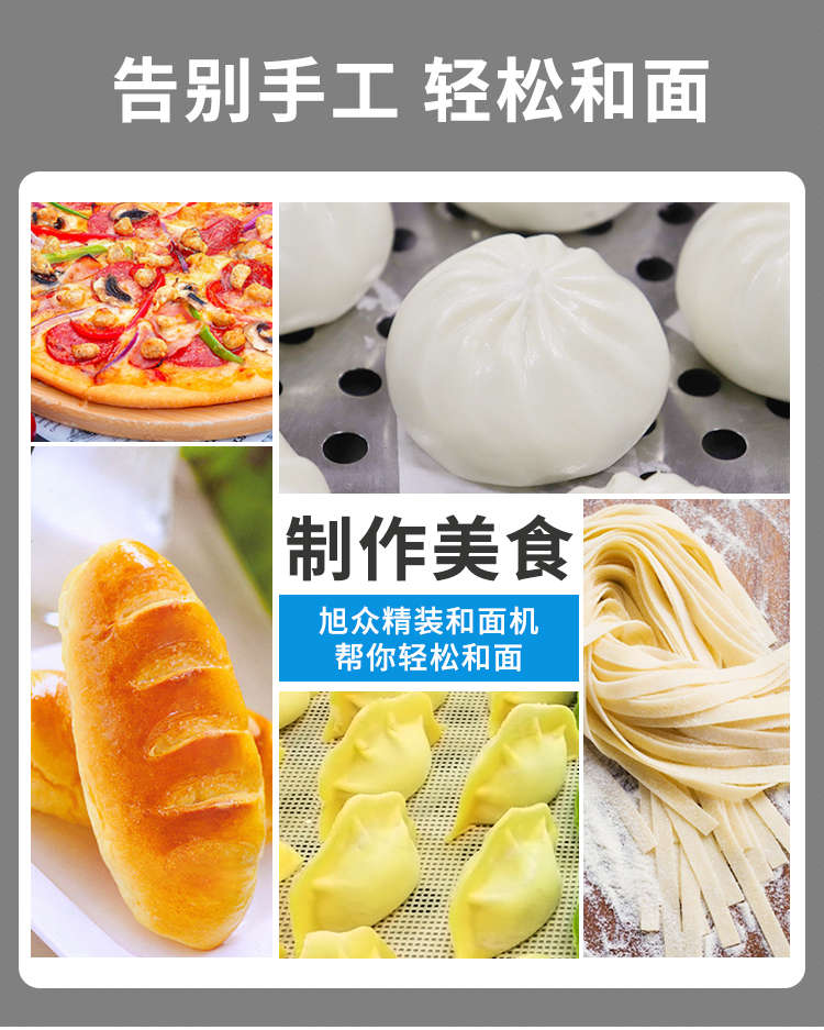 SZ-25精裝和面機,全自動和面,電動精裝和面機仿手工和面/快速均勻/面團勁道。有了旭眾精裝和面機讓你輕松和面,告別效率低下的手工和面和面快速,無需過多等待,省力省時省人工。
