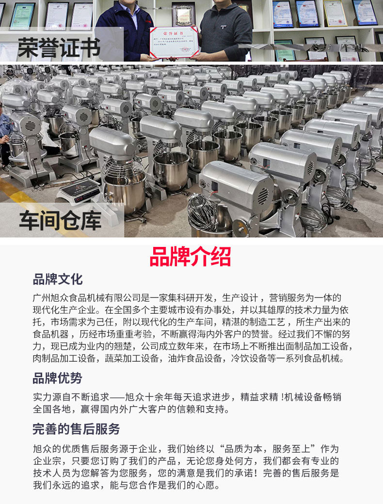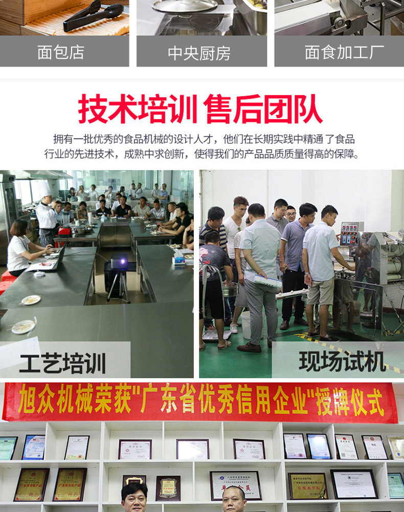 廣州旭眾食品機械有限公司是一家集科研開發(fā),生產設計,營銷服務為一體的現(xiàn)代化生產企業(yè)?,F(xiàn)代化生產車間,精湛制造技術,所產機械歷經市場重重考驗,不斷贏得海內外客戶的贊譽。
