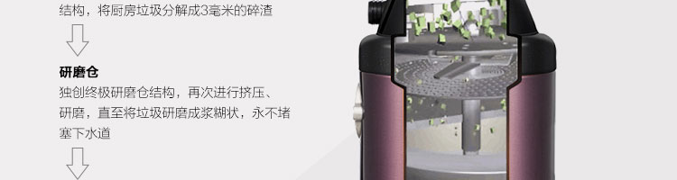 DCLQ38-廚房垃圾處理器,該機擁有獨特的粉碎功能,使所有垃圾研磨吸毒真正低于3毫米,用戶不用為管道堵塞而煩惱,粉碎后粗、細兩種垃圾通過濾孔自動分離,成漿狀的細垃圾隨水流流入管道,粗的垃圾會稍停留在研磨倉繼續(xù)粉碎,形成粉末狀后,再隨水流流入管道,客戶可以放心使用。