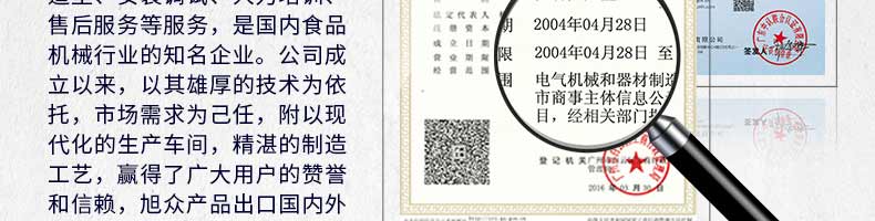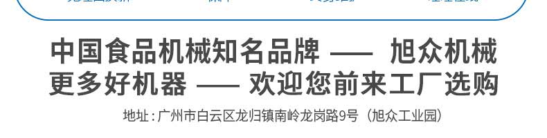 廣州旭眾食品機(jī)械有限公司是一家集科研開(kāi)發(fā),生產(chǎn)設(shè)計(jì),營(yíng)銷(xiāo)服務(wù)為一體的現(xiàn)代化生產(chǎn)企業(yè)。現(xiàn)代化生產(chǎn)車(chē)間,精湛制造技術(shù),所產(chǎn)機(jī)械歷經(jīng)市場(chǎng)重重考驗(yàn),不斷贏(yíng)得海內(nèi)外客戶(hù)的贊譽(yù)。