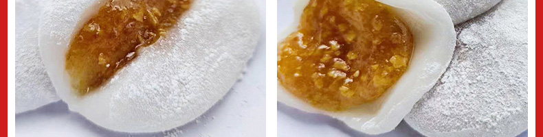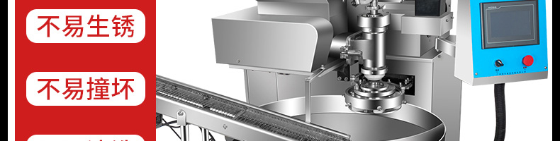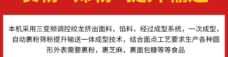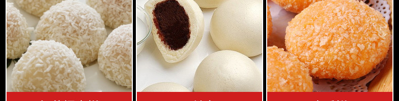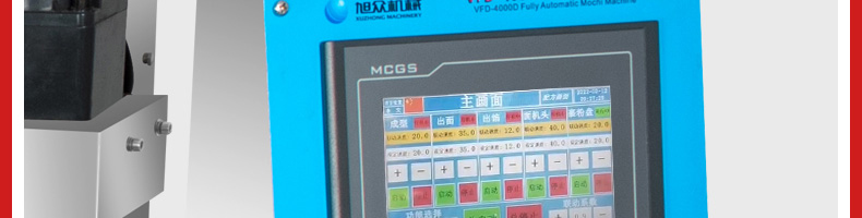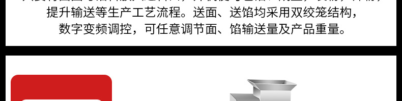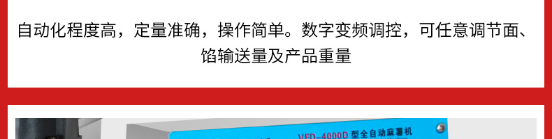 VFD-4000D麻薯機(jī),操作簡(jiǎn)單定量準(zhǔn)確只要將面團(tuán)與餡料放入進(jìn)料口,開機(jī)便可包餡、成型,裹粉,篩粉,提升輸送等生產(chǎn)工藝流程。送面、送餡均采用雙絞籠結(jié)構(gòu),數(shù)字變頻調(diào)控,可任意調(diào)節(jié)面、餡輸送量及產(chǎn)品重量。