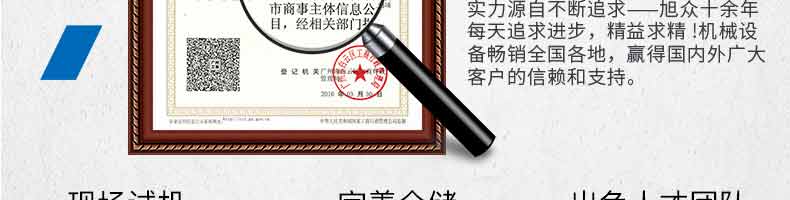 廣州旭眾食品機械有限公司是一家集科研開發(fā),生產(chǎn)設(shè)計,營銷服務(wù)為一體的現(xiàn)代化生產(chǎn)企業(yè)。現(xiàn)代化生產(chǎn)車間,精湛制造技術(shù),所產(chǎn)機械歷經(jīng)市場重重考驗,不斷贏得海內(nèi)外客戶的贊譽。