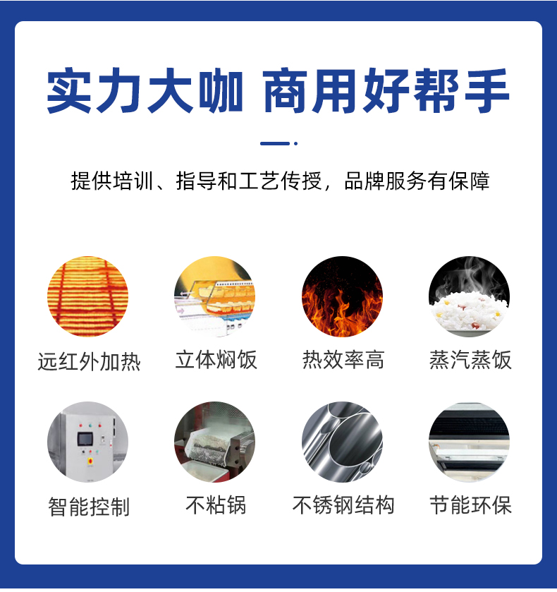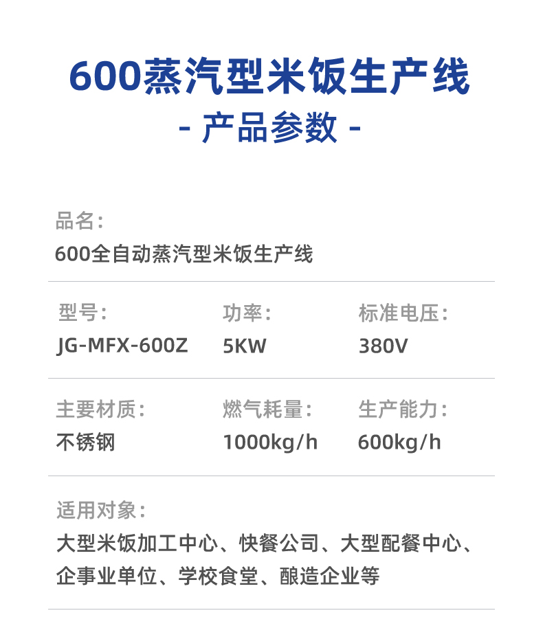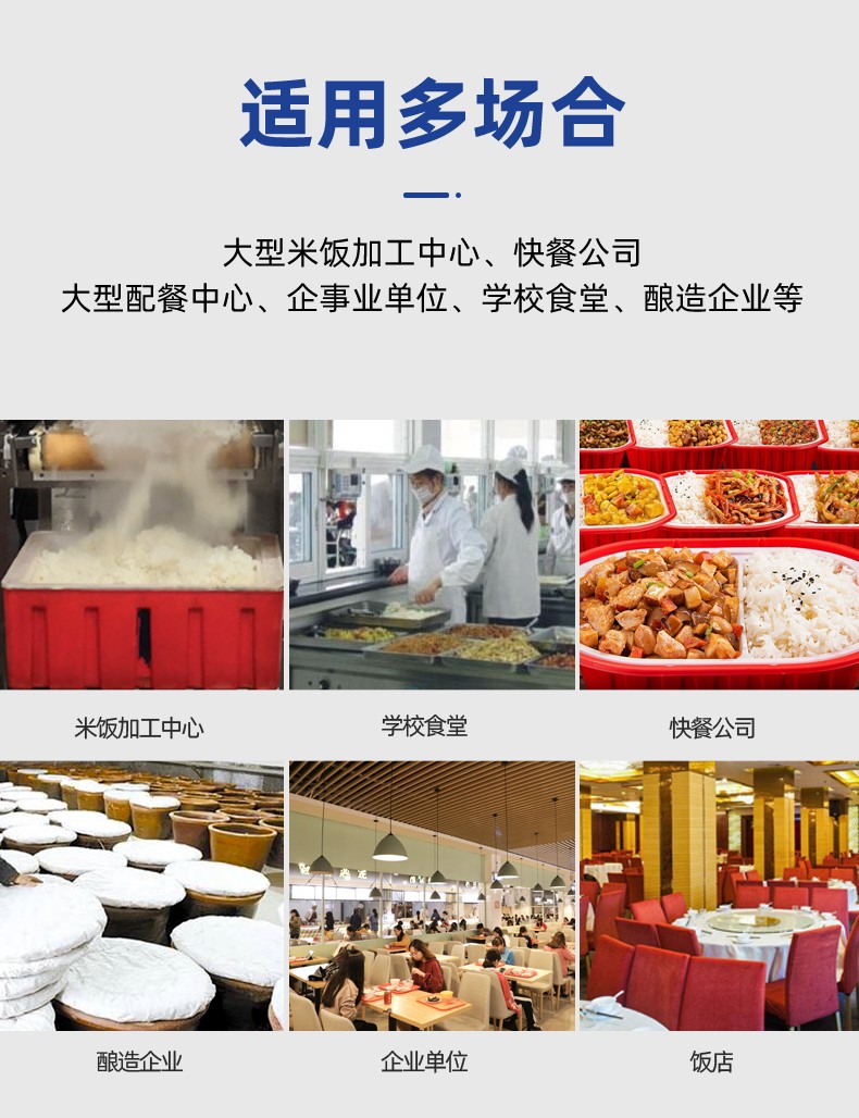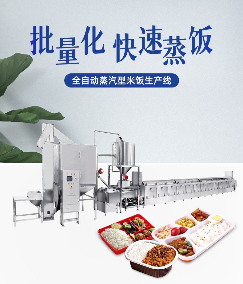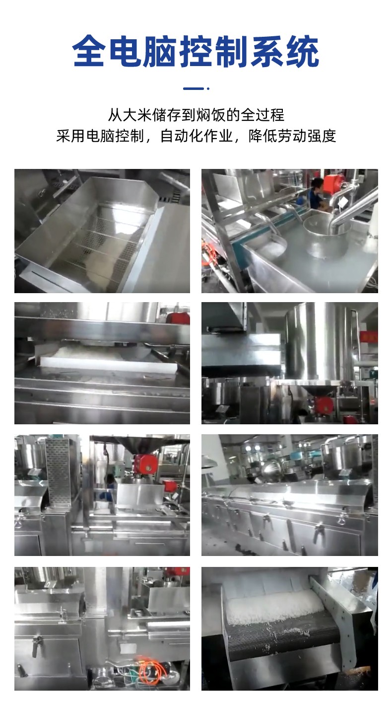 全自動(dòng)蒸汽型米飯生產(chǎn)線,全電腦控制系統(tǒng),從大米儲(chǔ)存到燜飯的全過程采用電腦控制,自動(dòng)化作業(yè),降低勞動(dòng)強(qiáng)度。實(shí)現(xiàn)全自動(dòng)生產(chǎn),多功能,一機(jī)多用,可以用于在蒸制各種食物實(shí)現(xiàn)全自動(dòng)生產(chǎn),無需人工服務(wù)。
