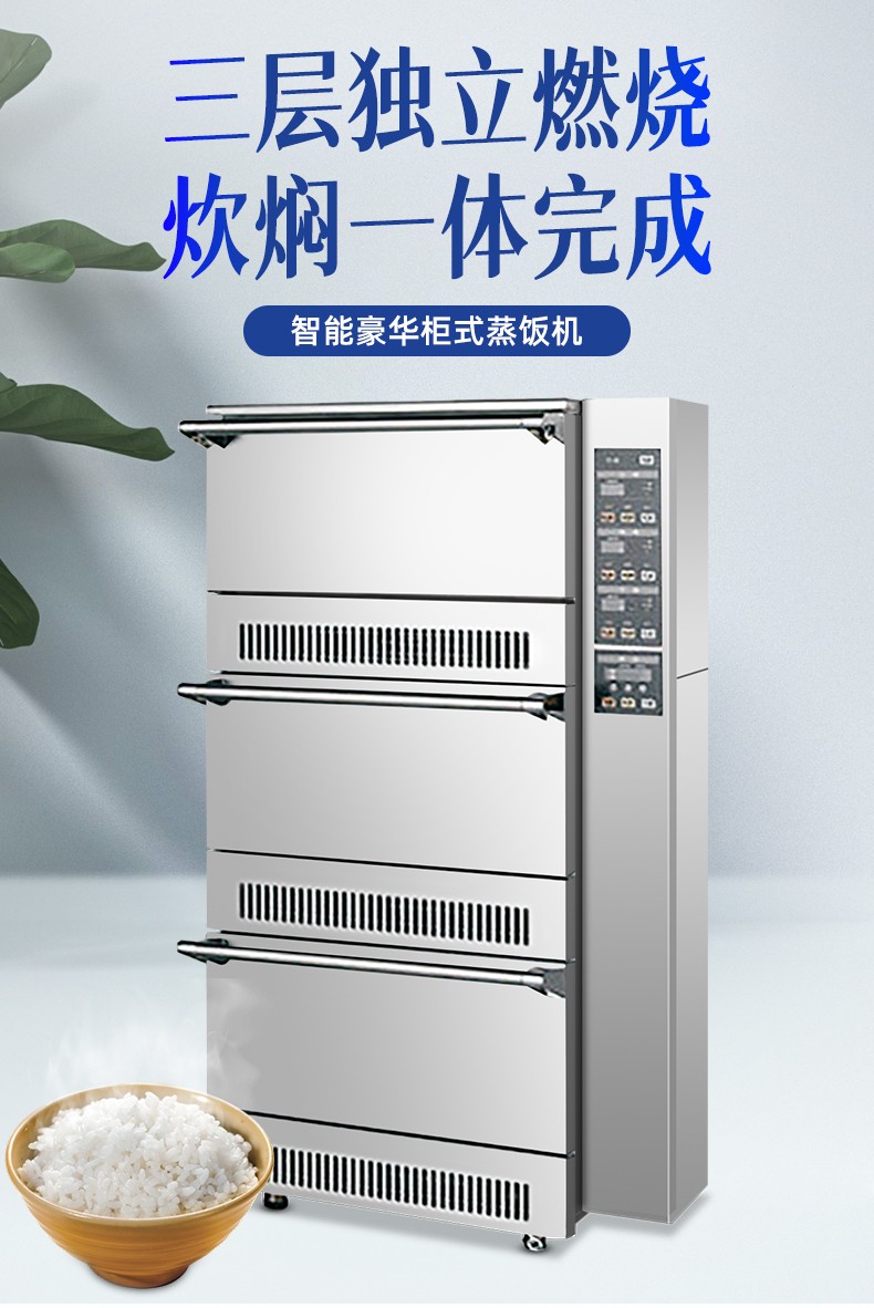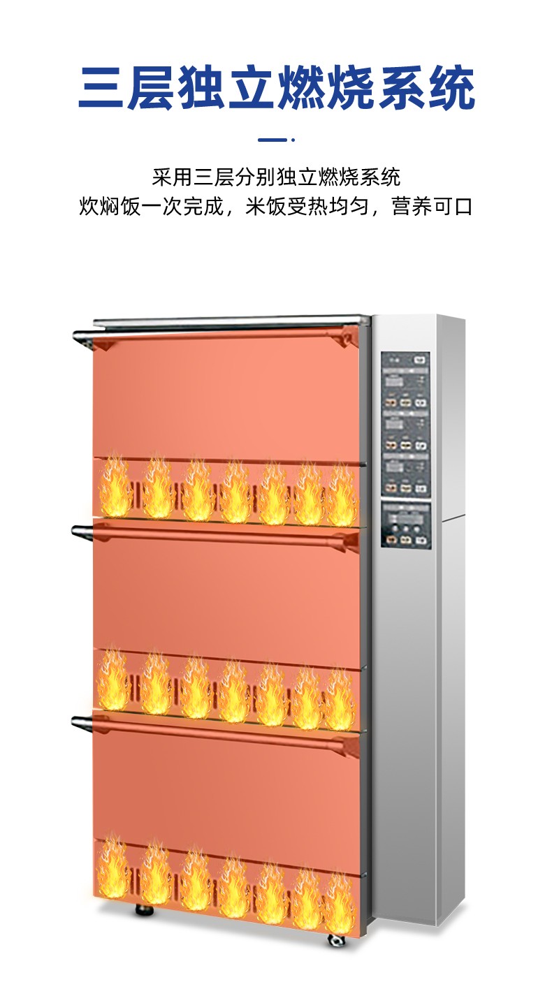 立式米飯機(jī),主要結(jié)構(gòu):主要由全不銹鋼柜體、上下三層結(jié)構(gòu)加原鋁鎂合金模鑄鍋體、微電腦自動(dòng)控制系統(tǒng)燃燒系統(tǒng)、熄火保護(hù)系統(tǒng)等組成。適用對(duì)象:主要用于生產(chǎn)加工高品質(zhì)米飯的壽司店、高端酒店西餐廚房、茶餐廳以及高端的快餐門店等