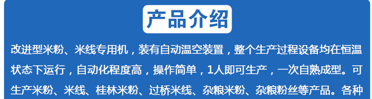 SZ-250多功能米粉機,生產(chǎn)多樣性可生產(chǎn)米粉、米線、粉絲、粉條、、年糕、玉米面條、各種雜糧粉絲、各種面條、雜糧面條、彩色面條以及以紅薯、玉米、大豆、蠶豆等制成淀粉為原料的等多種食品而且每種食品厚薄、粗細(xì)等規(guī)格可根據(jù)需要任意調(diào)整。