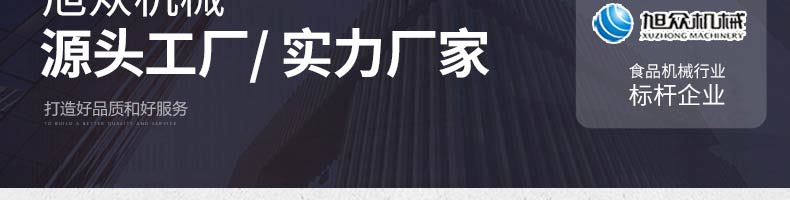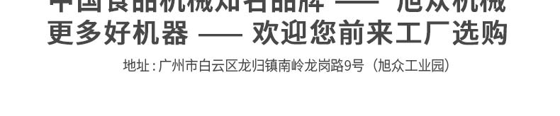 廣州旭眾食品機(jī)械有限公司是一家集科研開發(fā),生產(chǎn)設(shè)計(jì),營銷服務(wù)為一體的現(xiàn)代化生產(chǎn)企業(yè)。現(xiàn)代化生產(chǎn)車間,精湛制造技術(shù),所產(chǎn)機(jī)械歷經(jīng)市場重重考驗(yàn),不斷贏得海內(nèi)外客戶的贊譽(yù)。