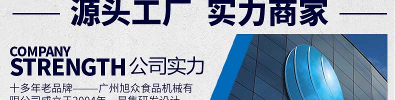 廣州旭眾食品機(jī)械有限公司是一家集科研開(kāi)發(fā),生產(chǎn)設(shè)計(jì),營(yíng)銷(xiāo)服務(wù)為一體的現(xiàn)代化生產(chǎn)企業(yè)。現(xiàn)代化生產(chǎn)車(chē)間,精湛制造技術(shù),所產(chǎn)機(jī)械歷經(jīng)市場(chǎng)重重考驗(yàn),不斷贏得海內(nèi)外客戶(hù)的贊譽(yù)。