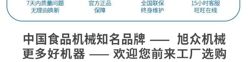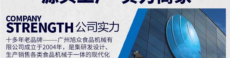 廣州旭眾食品機(jī)械有限公司是一家集科研開發(fā),生產(chǎn)設(shè)計(jì),營銷服務(wù)為一體的現(xiàn)代化生產(chǎn)企業(yè)?,F(xiàn)代化生產(chǎn)車間,精湛制造技術(shù),所產(chǎn)機(jī)械歷經(jīng)市場重重考驗(yàn),不斷贏得海內(nèi)外客戶的贊譽(yù)。