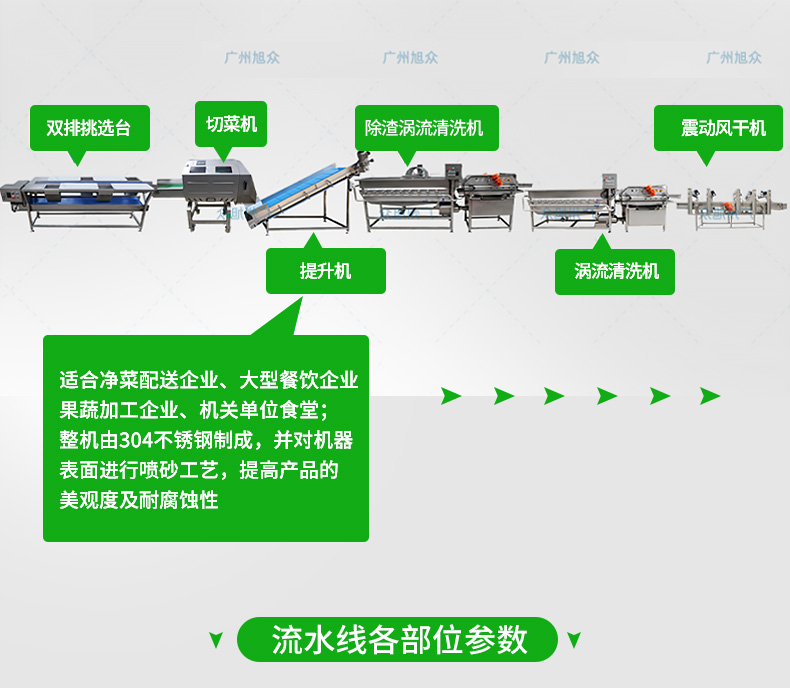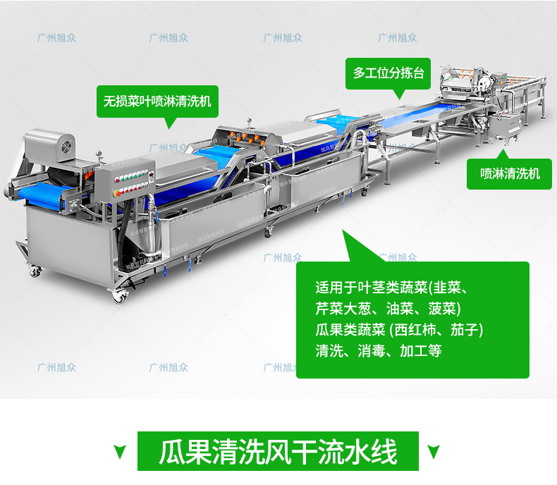 全自動大型葉菜清洗線,自動化程度高、整線設(shè)計合理、節(jié)約人工降低生產(chǎn)成本、外形美觀大方。主要用于葉菜加工,整線自動化凈菜生產(chǎn)此線將切割、清洗、風干設(shè)備連接成線,適合芹菜、韭菜菠菜、大白菜高麗菜、大蔥等葉菜類蔬菜加工生產(chǎn)
