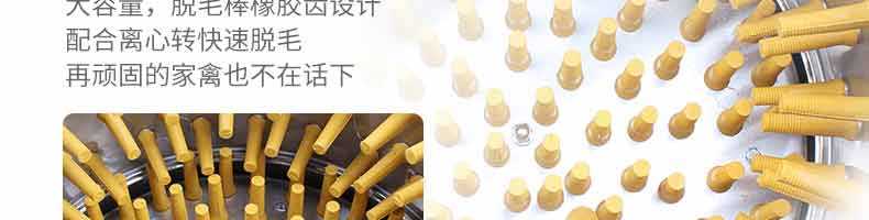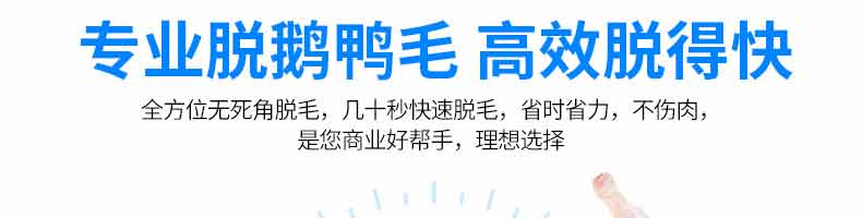 鵝鴨型脫毛機(jī),本機(jī)用于雞、鴨、鵝宰殺后的自動(dòng)脫毛,還可用于脫姜皮、脫馬鈴薯皮、脫魚(yú)鱗等農(nóng)產(chǎn)品。本機(jī)操作簡(jiǎn)單,省力、省時(shí)間、工作效率相當(dāng)于十多個(gè)人的手工勞動(dòng)。