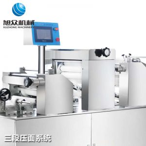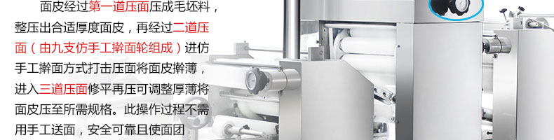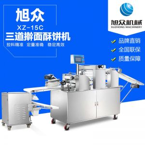 xz-15c三道搟面酥餅機,仿手工制作面食產品的機型,占地面積小,重量輕,運用搟面杖壓面和打擊面團,以保證高面筋性和面帶的密度,并綜合考慮面食的口感而研發(fā)??缮a東北糖酥餅,東北大香酥餅,蘇式月餅,芝麻餅,鮮花餅,老婆餅。購機免費提供工藝技術