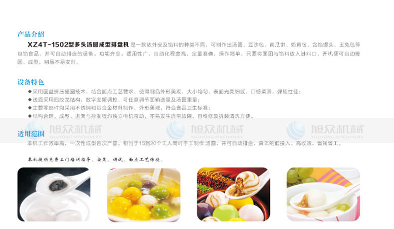 XZ4T -1502多頭湯圓成型排盤機,湯圓機,本機只要將面團放入進料口,開機便可自動搓圓、成型的設(shè)備,一次性成型四次產(chǎn)品,制品不易變形,工作效率高