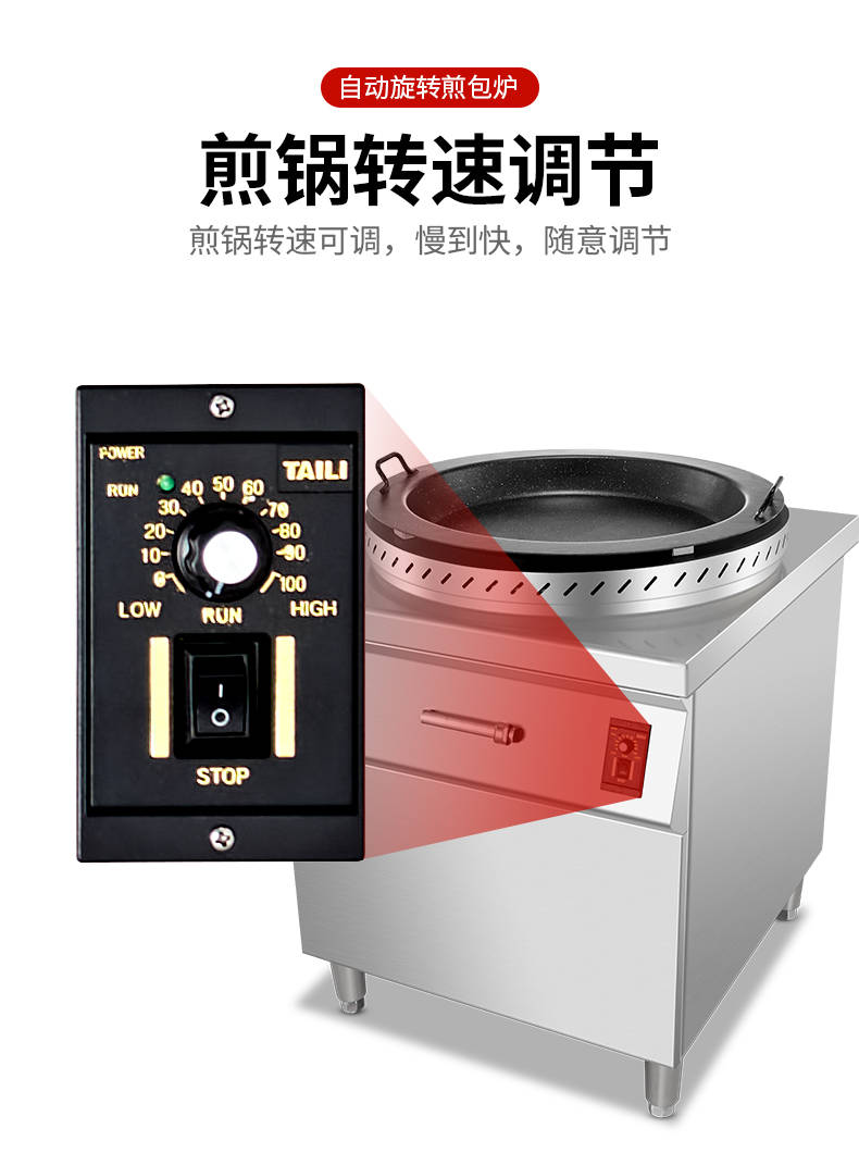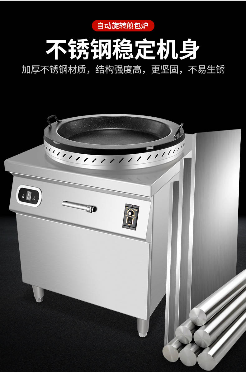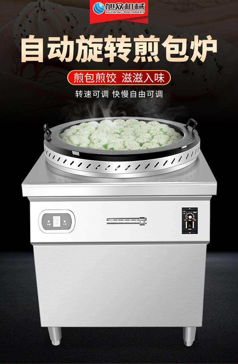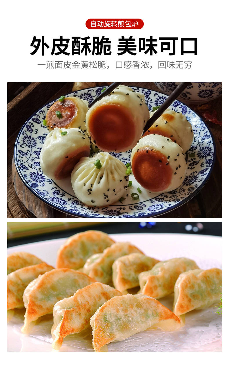 XZ-WSKB自動旋轉(zhuǎn)煎包爐,煎制各種美食鍋在手,各種煎包煎餃煎美食,輕松搞定。自動旋轉(zhuǎn)、受熱均勻煎鍋360°旋轉(zhuǎn)煎美食,省時省力,不焦不糊,高效率轉(zhuǎn)速可調(diào)快慢自由可調(diào)。