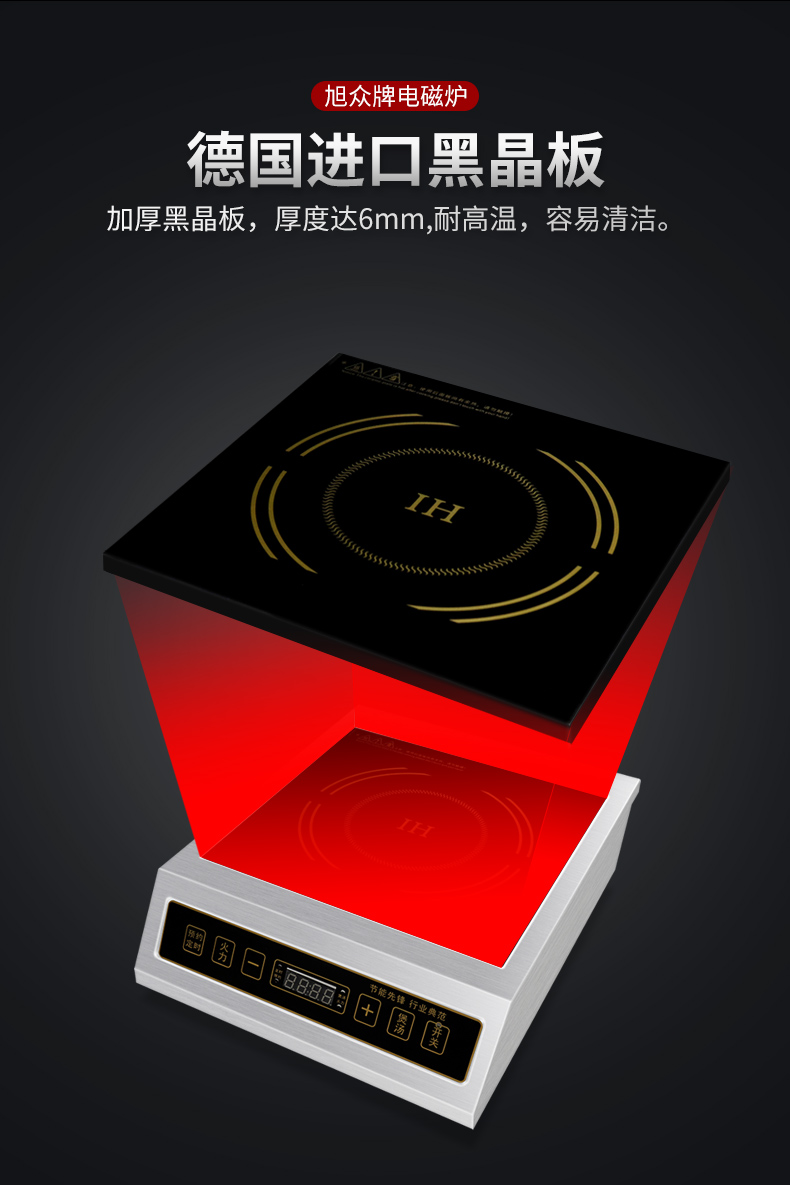 旭眾無(wú)明火灶,適用限制明火使用的商用場(chǎng)所。(中央廚房、酒店、火鍋店、餐廳、烤肉店、黃燜雞店等都適用)。