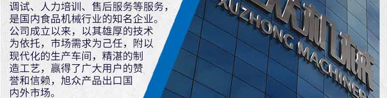 廣州旭眾食品機械有限公司是一家集科研開發(fā),生產(chǎn)設計,營銷服務為一體的現(xiàn)代化生產(chǎn)企業(yè)?,F(xiàn)代化生產(chǎn)車間,精湛制造技術,所產(chǎn)機械歷經(jīng)市場重重考驗,不斷贏得海內(nèi)外客戶的贊譽。