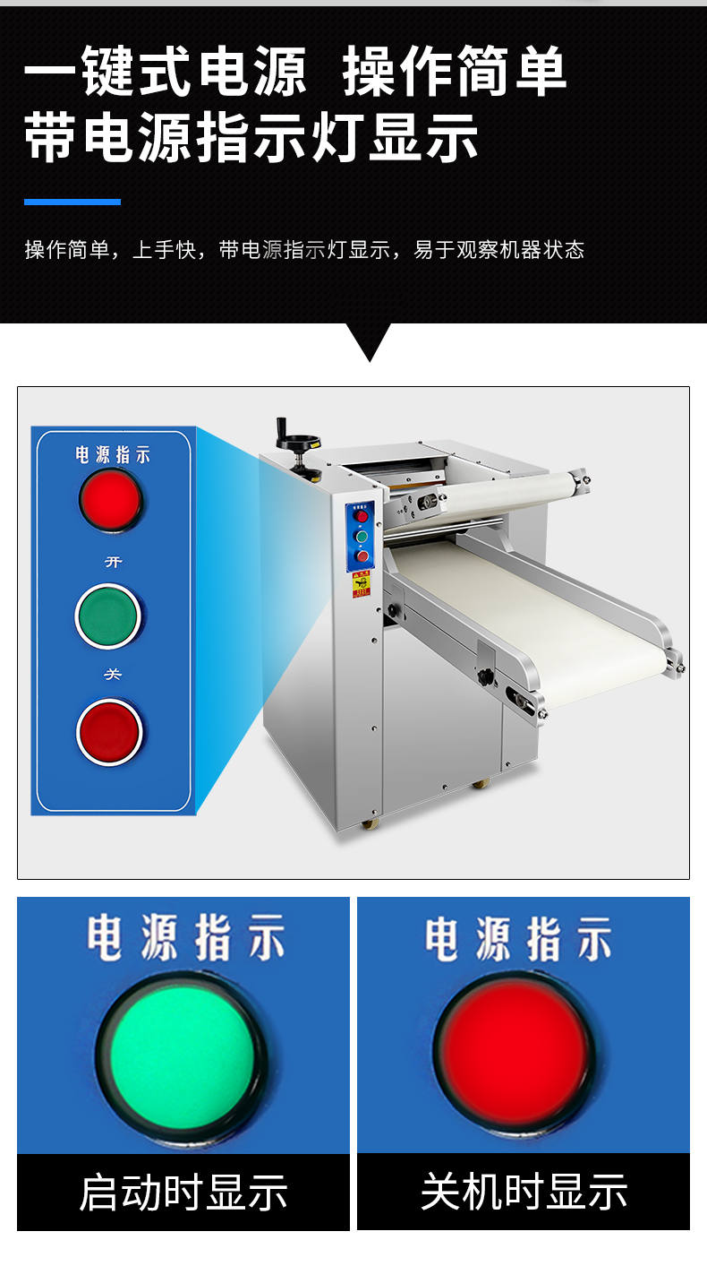 YMZD-350自動壓面機,自動循環(huán)、厚薄可調(diào)。包子、餃子、饅頭,面館等場所適用。啟動循環(huán)壓面、揉面。全自動仿人工揉面,壓面自動輸送、揉、壓、折疊。