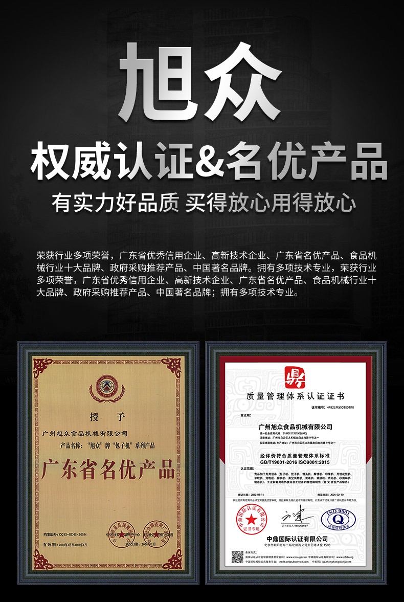 廣州旭眾食品機(jī)械有限公司是一家集科研開(kāi)發(fā),生產(chǎn)設(shè)計(jì),營(yíng)銷(xiāo)服務(wù)為一體的現(xiàn)代化生產(chǎn)企業(yè)。現(xiàn)代化生產(chǎn)車(chē)間,精湛制造技術(shù),所產(chǎn)機(jī)械歷經(jīng)市場(chǎng)重重考驗(yàn),不斷贏得海內(nèi)外客戶的贊譽(yù)。