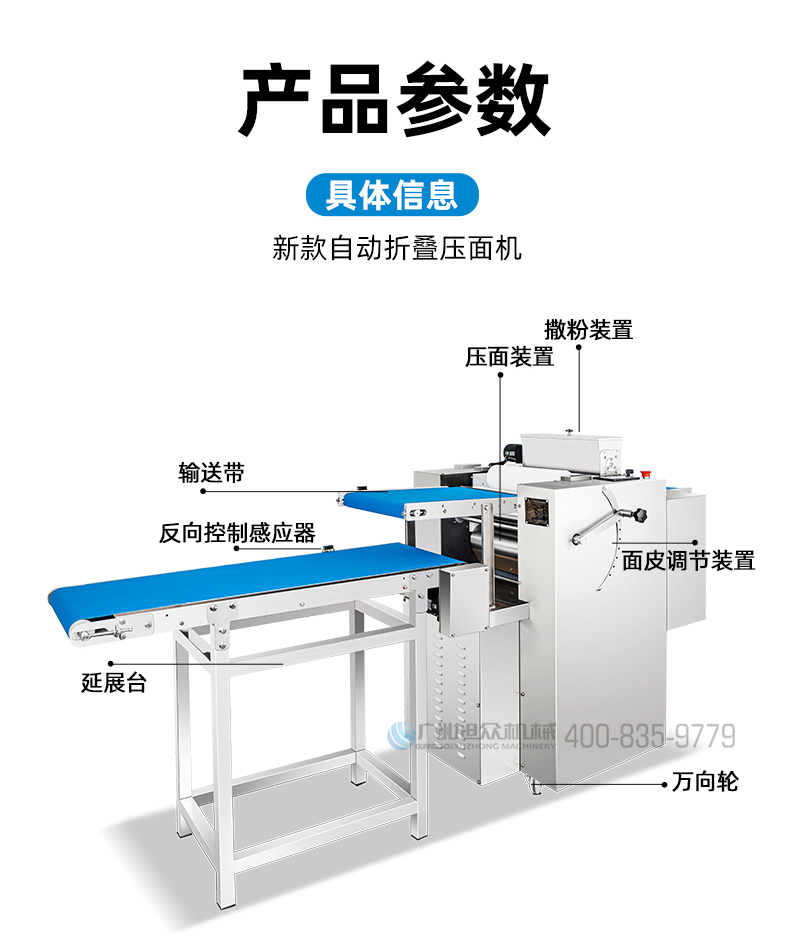 XZ-ZDYMJ370型自動(dòng)折疊壓面機(jī),整機(jī)不銹鋼機(jī)身打造,真材實(shí)料,選用不銹鋼材質(zhì),打造經(jīng)久耐用、防腐蝕。匠心細(xì)節(jié),彰顯品質(zhì)貼心設(shè)計(jì)。一鍵設(shè)定壓面次數(shù),智能定時(shí),只需設(shè)定好壓面次數(shù),就能全自動(dòng)壓面出面。