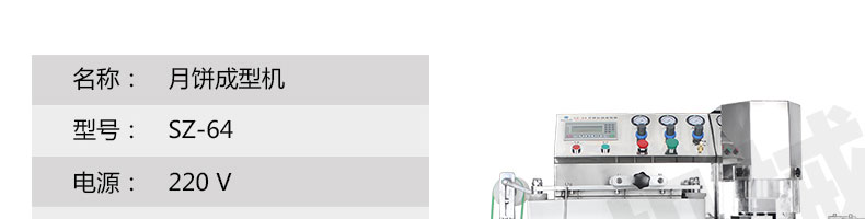 SZ-64月餅自動成型機(jī),可同于制作各種月餅,適合印制各種月餅。適用于蛋糕房、休閑食品廠、食品加工產(chǎn)、面包房、月餅加工廠、超市、學(xué)校、食堂等各種工作場所。可滿足不同客戶群體。免費(fèi)提供工藝技術(shù)。