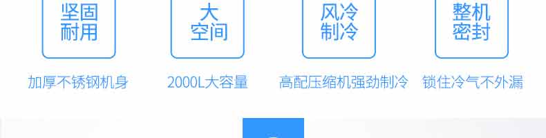XZ-速凍柜,實力派,不妥協(xié)。4大強(qiáng)勢來襲,源自生活所需。堅固耐用、大空間、風(fēng)冷制冷、整機(jī)密封、加厚不銹鋼機(jī)身,2000L大容量,高配壓縮機(jī)強(qiáng)勁制,令鎖住冷氣不外漏。