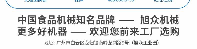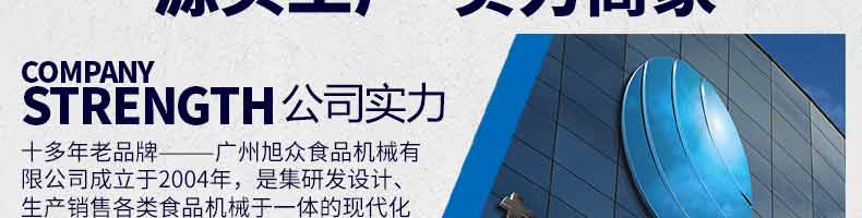 廣州旭眾食品機(jī)械有限公司是一家集科研開發(fā),生產(chǎn)設(shè)計,營銷服務(wù)為一體的現(xiàn)代化生產(chǎn)企業(yè)?,F(xiàn)代化生產(chǎn)車間,精湛制造技術(shù),所產(chǎn)機(jī)械歷經(jīng)市場重重考驗,不斷贏得海內(nèi)外客戶的贊譽(yù)。